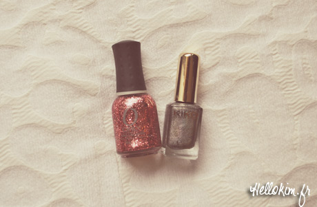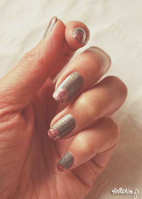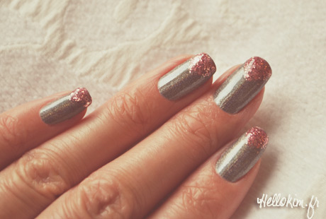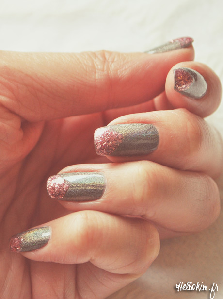 Parce que c’est la fête, j’ai choisi les paillettes rose et le vernis gris holographic. C’est un peu sombre, mais ça scintille ! Sur ce, je vous souhaite une belle, heureuse, merveilleuse année 2013 !