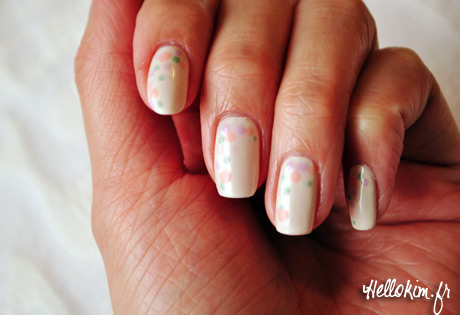 très jolie manucure, toute douce et avec de belles couleurs pastels ! j’adore =)