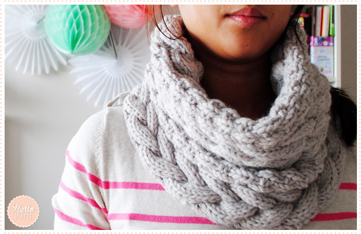 Il est très beau ton snood ! J’aime beaucoup la grande torsade du milieu !