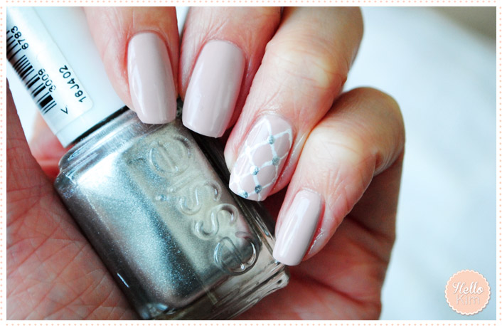 New week, new manicure and this one is a bit special . In April, one of my best friends will marry and last weekend she came home to do some tests (but mostly for brunch but hey, that’s a detail … ). My first idea is to test a French manicure but lace version with Konad plates (see here and here) but it was a fail. To speed up the drying of the base, I applied drops of the quick dry of Essence and because the product is greasy, when I tried to put on the pattern, the stamp slipped. And then there is also the problem of the shape of the nail : I rather have square nails when she has more oval. I was quite unsettled by this failure and then we did some research on the internet for nail art for bride’s inspiration and stopped on this nail art. We did some tests on this basis on her hands and I believe that we now have a good track. To prepare myself for D-Day, I trained on my own hands.