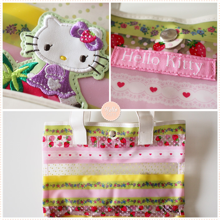 Sac Hello Kitty transparent avec motifs coloré – Très peu utilisé > en très bon état Prix : 12€ Dimensions Longueur : 33cm Hauteur : 24cm Profondeur : 8,5cm Hanses : env. 38cm Détails Fermeture par aimant Visuel d’Hello Kitty brodé en bas à gauche « Hello Kitty » en tissu cousu au niveau de la fermeture