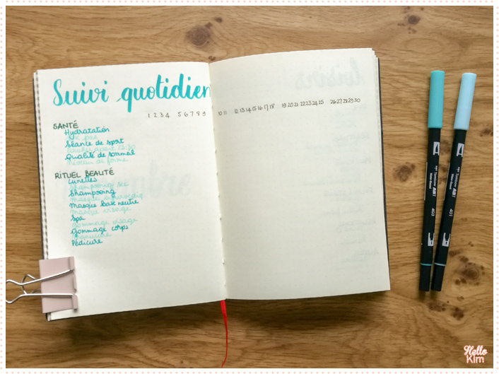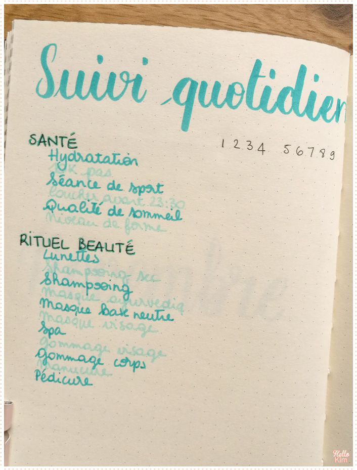 Ahah effectivement, je consigne beaucoup d’information. Mais l’avantage du Bullet journal, quand tu n’utilises pas un carnet pré-formaté, c’est que tu peux vraiment l’adapter dans le temps selon tes envies et des besoins. Ce mois-ci c’est ça que je tracke, mais en décembre, il pourrait être différent encore !