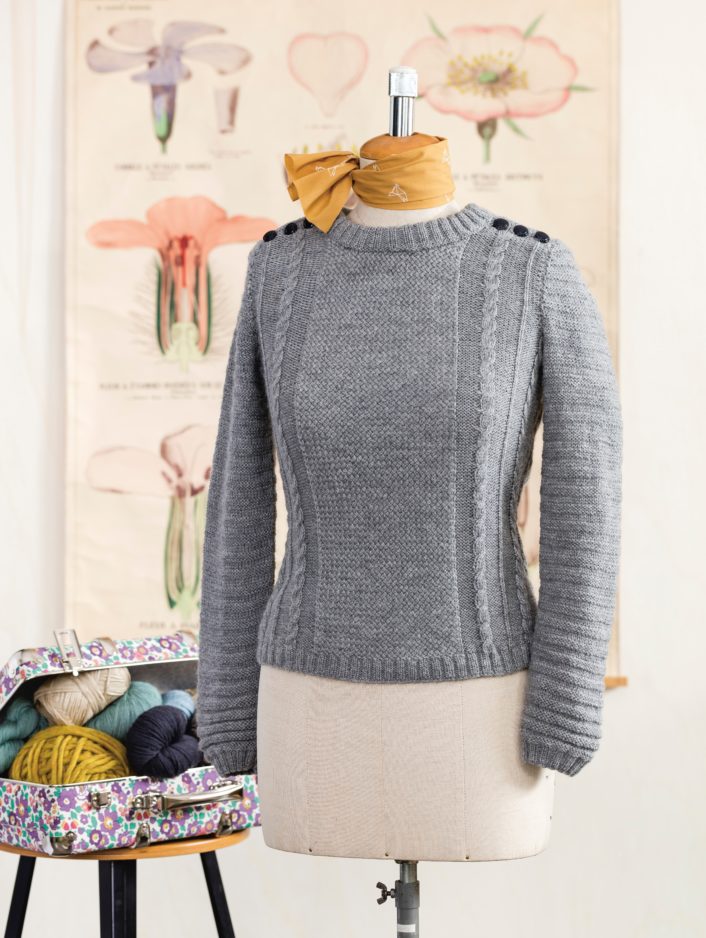 Quand j’ai eu ce livre entre les mains, j’ai flashé sur 3 modèles dont le premier que j’ai réalisé l’année dernière : le pull Romantic. J’ai aussi ajouté ce pull Grey dans ma liste des ouvrages à tricoter. Pour celui-ci, je n’ai pas prévu de changement et j’ai d’ailleurs déjà la Drops Baby Mérinos.