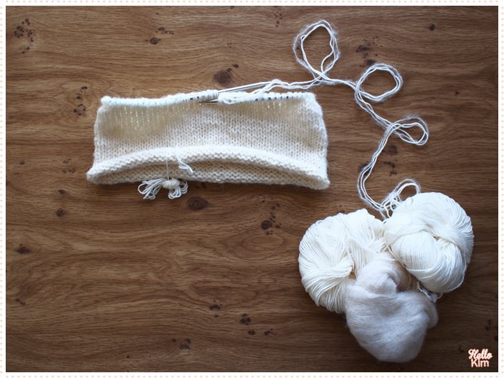 Pour réaliser mon bonnet de Noël, j’ai débuté par le bandeau. Je le voulais épais et un peu duveteux.