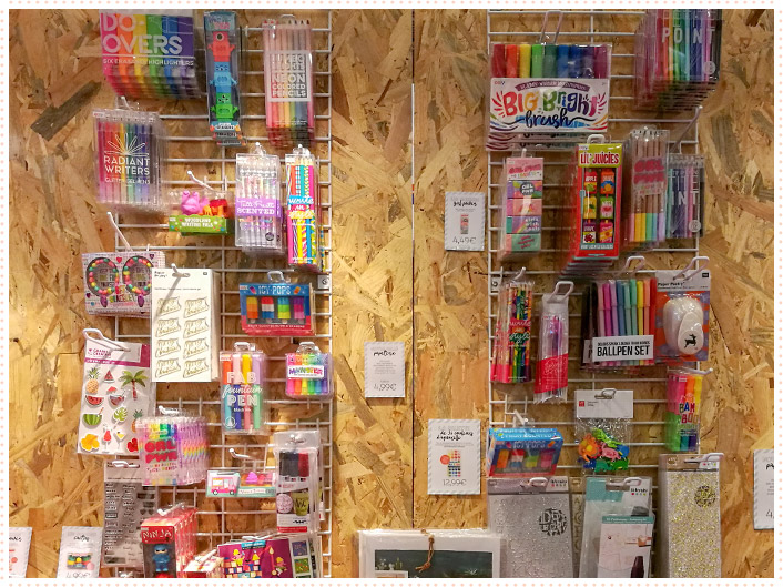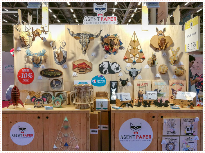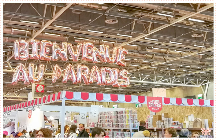 Au premier rang du salon, il y avait le stand de la Petite épicerie que j’ai adoré. Cette invitation faite de ballons en forme de lettre m’a fait sourire plus d’une fois : Bienvenue au Paradis… C’était tout à fait ça ! Dans les rayons du stand, une belle sélection de ce que propose la boutique. Moi, je me suis attardée sur la collection de feutres et stylos.