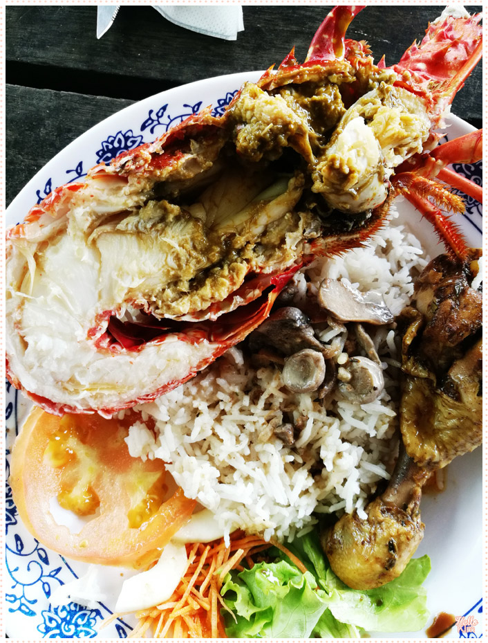 Nous sous sommes arrêtés sur l’îlet madame pour le déjeuner. Je pense que je punch et le soleil faisant effet, j’étais tellement fatiguée qu’un hamac n’aurait pas été du luxe ! Ceci dit, la belle assiette de homard m’a assez vite réveillée !