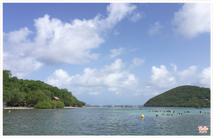 C’est un lieu assez sympa mais tellement touristique que c’est un peu l’usine ! Les bateaux s’entassent pour déverser son flow de touristes qui sont là pour boire du rhum en dansant sur de la musique. Après on a passé un super moment, là en fin de journée on avait vu de belles choses, écouté des histoires cocasses et on finissait en beauté avec à boire et à manger en plein milieu de la mer. On avait sympathisé avec nos camarades de croisières et l’alcool faisant son effet, on a dansé comme jamais dans la mer !