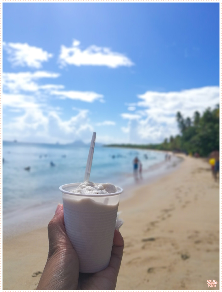 La plage est située au bord d’une petite route qui comporte pas mal de petits commerces ambulants. On a pu trouver des « boutiques » de souvenirs mais aussi de quoi se restaurer (et notamment le fameux sorbet coco) et aussi un club nautique qui propose de louer plusieurs types d’équipements à l’heure.