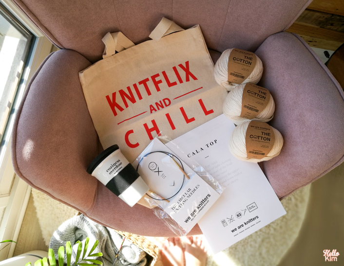 Ce n’est pas vraiment la saison mais la box est composée d’un mug que j’aime beaucoup avec l’inscription : Coziness overdose. En plus du mug, j’ai pu choisir un tote bag parmi toute la sélection disponible chez WAK et j’ai choisi la fameuse version Knitflix and chill.