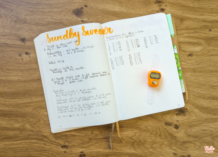 Si tu ne veux pas opter aucun de ces accessoires, tu peux aussi simplement prendre des notes sur une feuille ou même un carnet de note dédié au tricot. Personnellement, j’adore le compteur de rang électronique mais j’ai aussi un carnet ou je prends des notes sur mes en-cours. Tu peux alors faire des bâtons pour noter chaque rang/tour, ou tu peux numéroter tous les rangs et tu entoures ou barres chaque numéro de rang passé. Ça peut te donner une petite satisfaction non négligeable !