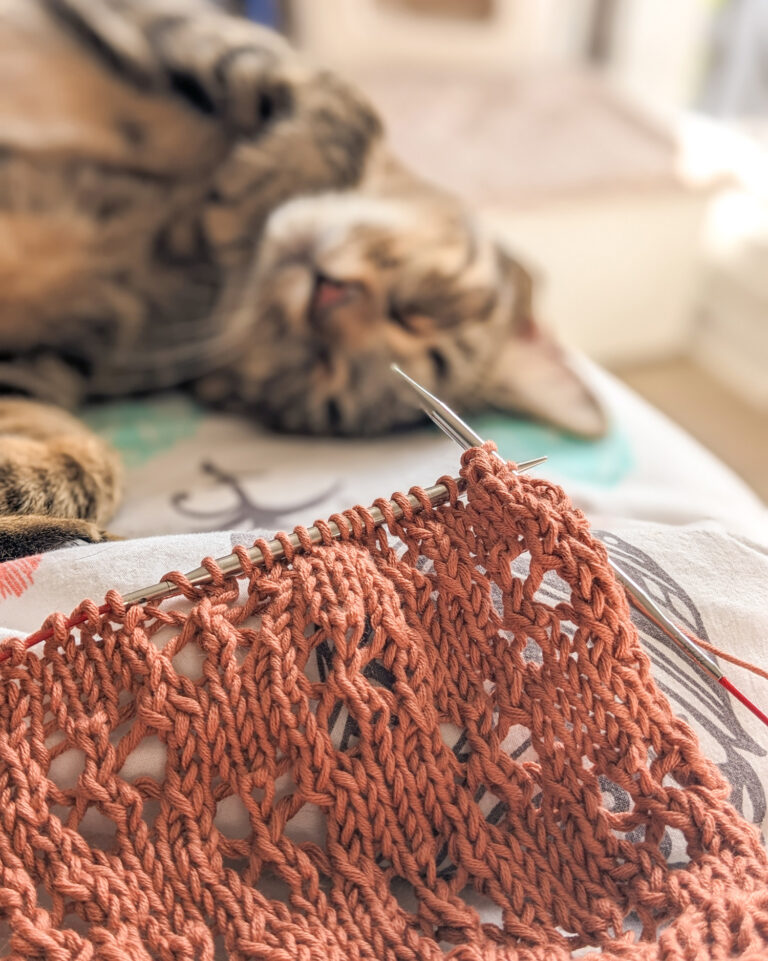 Autre point technique : le relevé de mailles pour la bordure en i-cord. Ce n’est pas compliqué en soi, mais il faut prendre son temps et bien répartir les mailles pour un rendu harmonieux.