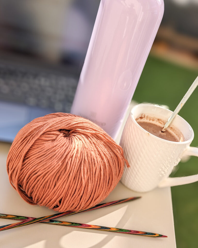 Comme je me trouvais entre deux tailles et que mon échantillon était légèrement plus petit que la référence, j’ai opté pour la version L, espérant qu’elle ne soit pas trop grande une fois tricotée.