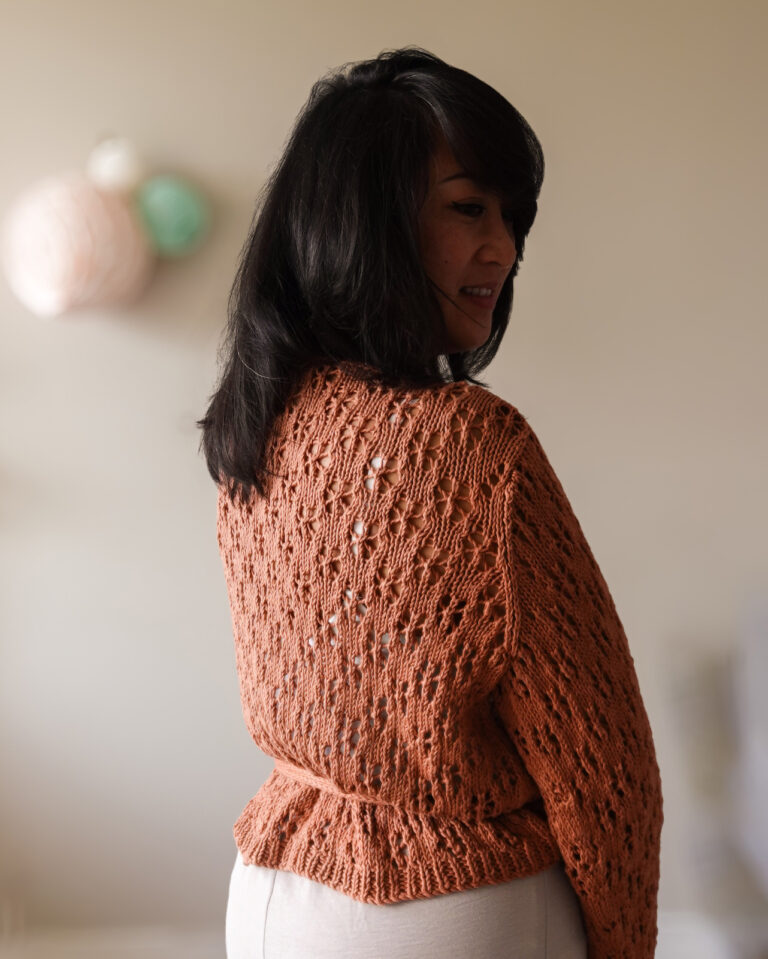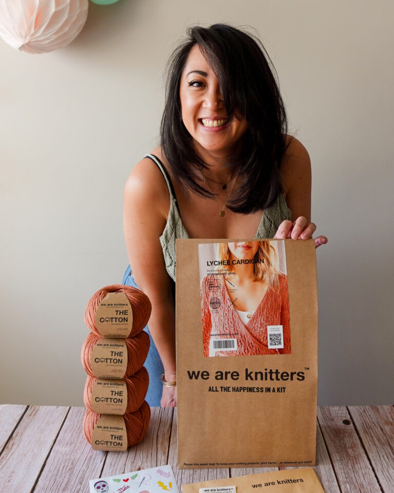 Tout est parti d’une collaboration avec We Are Knitters, qui m’a proposé de choisir un kit dans leur catalogue pour un concours organisé à l’occasion de la Journée Mondiale du Tricot. En explorant les modèles, mon regard a été instantanément attiré par ce magnifique cache-cœur ajouré. Séduite par son style, j’en ai profité pour demander un exemplaire pour moi, en plus de la dotation du concours.
