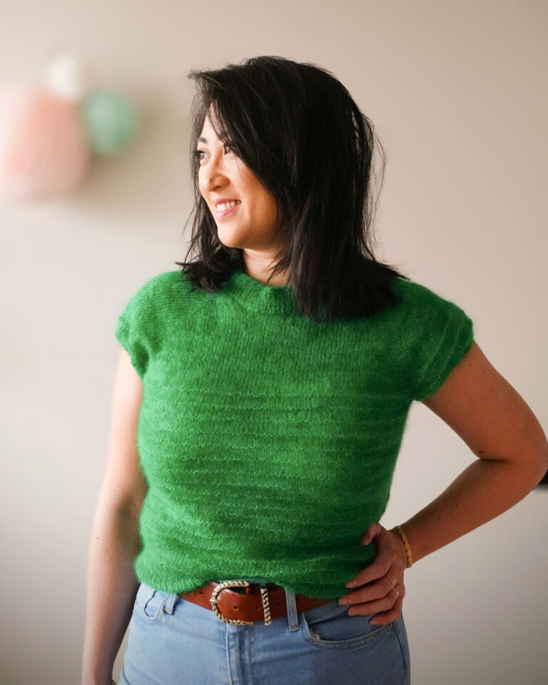 C’était également ma première fois avec cette qualité de fil, et bien que ma préférence aille habituellement vers le rose, je suis ravie d’avoir choisi ce vert si particulier.