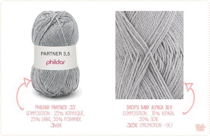 Que de mieux pour vous convaincre qu’un petit comparatif ? La pelote Phildar Partner 3.5 de 50g composée de 25% acrylique, 25% laine, 50% polyamide, est vendue sur le site de la marque à 3,40€. La pelote Drops Baby Alpaca Silk de 50g composée de 70 % alpaga, 30 % soie est actuellement vendue 3,05€ sur le site averybadsheep (promotion en cours de -1€). Vous ai-je convaincue que ça vaut vraiment le coup d’aller voir ailleurs ?