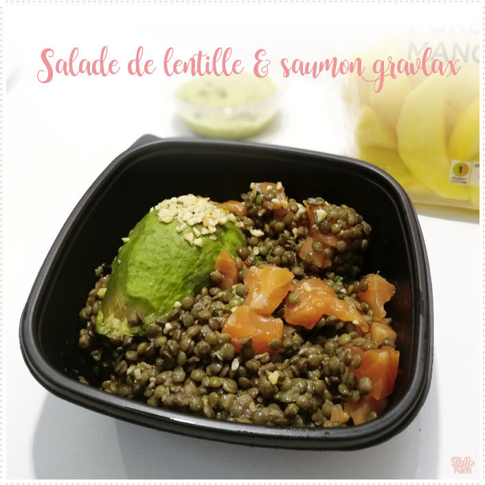 Le principe de Frichti est de proposer de bons produits fraichement cuisinés et livrés à domicile/bureau. Le menu change apparemment régulièrement et pour ma part, je me suis laissée tentée par le guacamole pour l’entrée et la salade de lentilles et saumon gravlax.